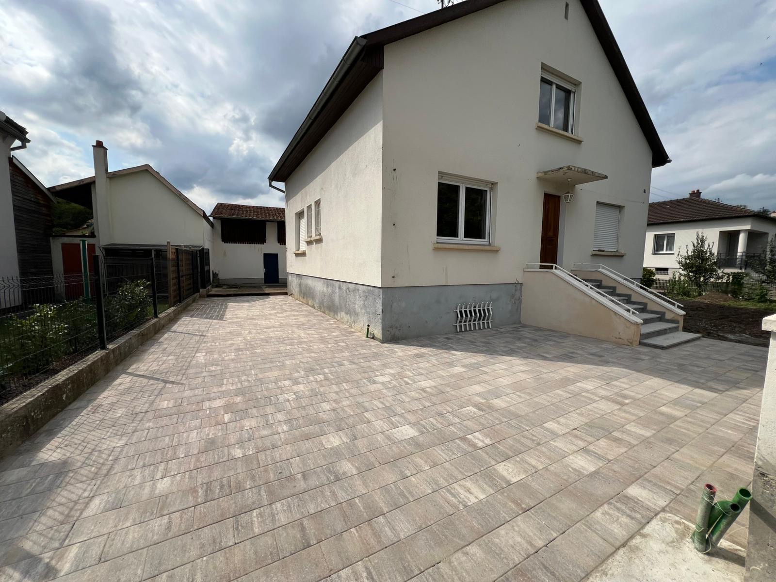 Chantier Tagolsheim enlèvement d’un vieux mur pour remplacement avec une clôture de 1m73 sur bordure de 50 avec 10/14 jaune de finition