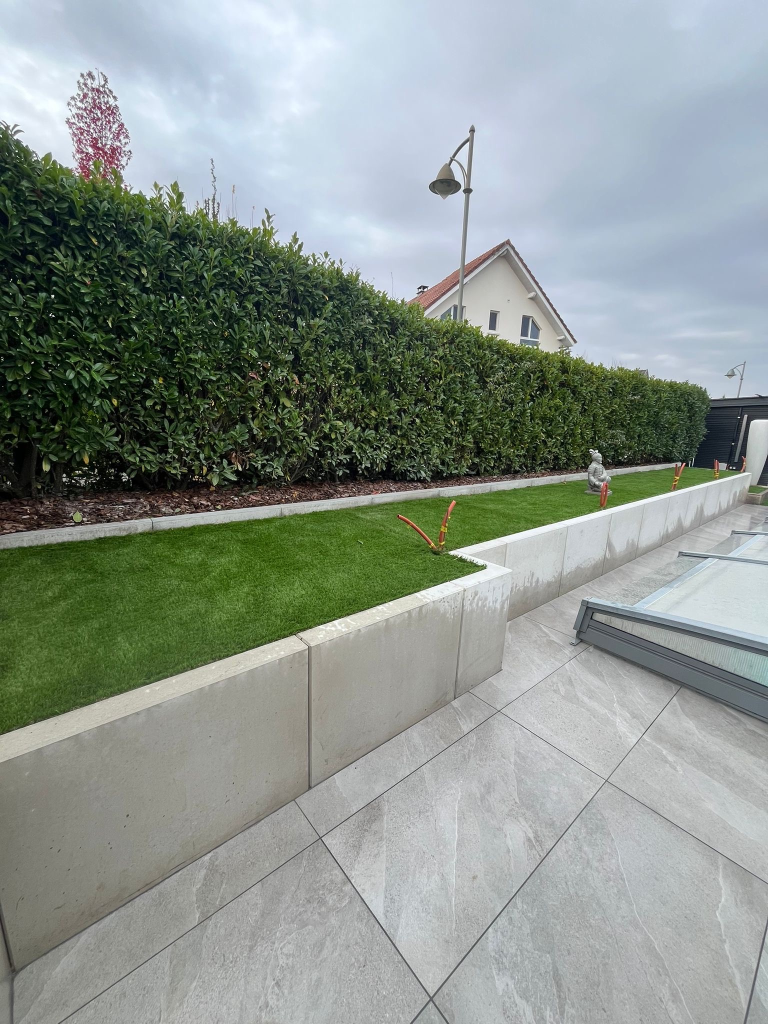 Mur en L, dallage et pose de gazon